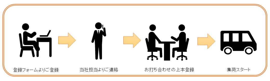 ボンバーの集荷サービス、たすかる便にご登録のお客様は集荷2日前までにメールでご連絡、前日までに当社までお電話でご依頼ください。